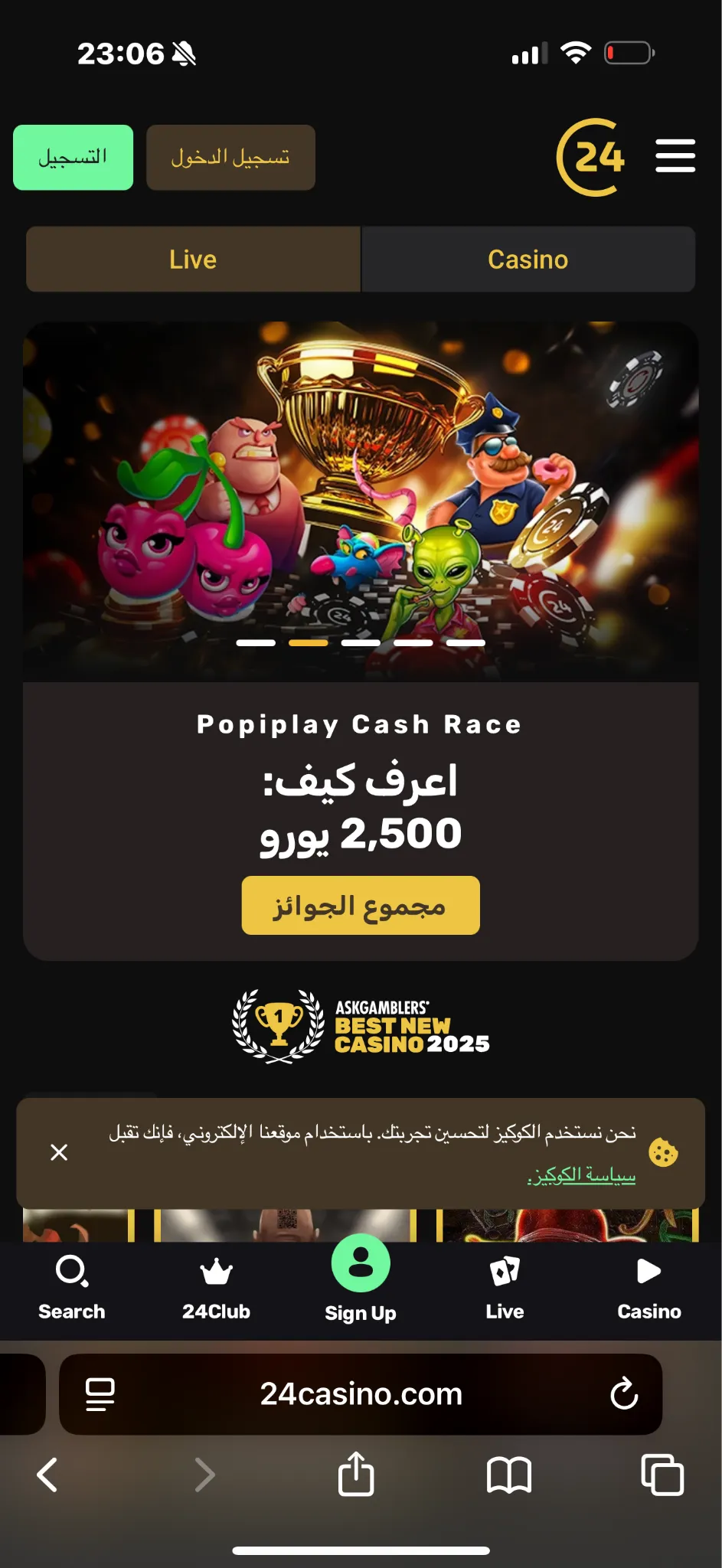 كازينو 24casino هو بدون شك واحد من الخيارات المفضلة للاعبين العرب، بحيث يضم ما يفوق 14 ألف لعبة، ويتيح للاعبين سحب ما يصل إلى 50 ألف دولار أسبوعياً. بعد اطلاعنا على تقييمات اللاعبين الحاليين، وجدنا أن معظمها إيجابية وتشيد بتجربة اللعب بشكل عام.